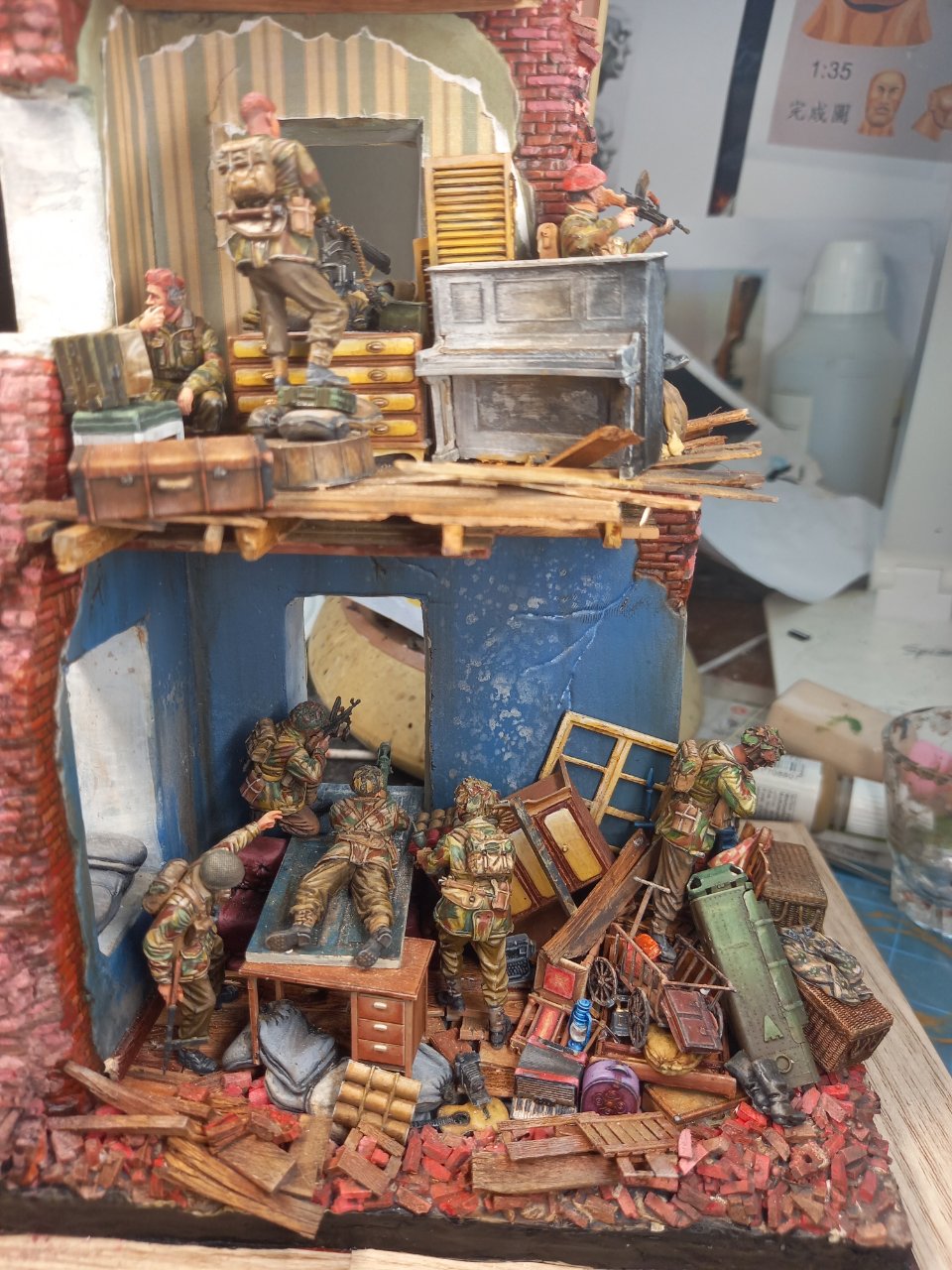 2층과 1층 1층의 집기들은 거의 미니아트제 입니다. 독일군 군복 군화는 노획품으로 작전초기 분위기 좋을때 얻은 것이라고 생각해주십시오