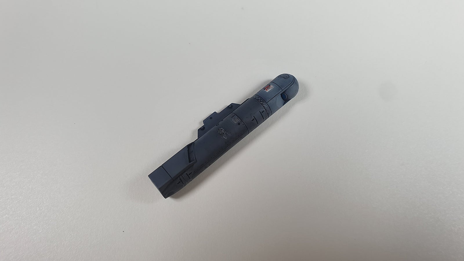 랜턴 타겟팅 포드입니다, 타미야답게 가동되는 부위도 없고 적은 부품수로 잘 재현했습니다. 헤드 부분에 원래 LASER OPTIC 과 FLIR OPTIC 두개의 센서부분이 있는데 타미야는 헤드의 가동을 포기하고 LASER OPTIC 센서만 재현했습니다 모양은 정확한 것 같습니다.