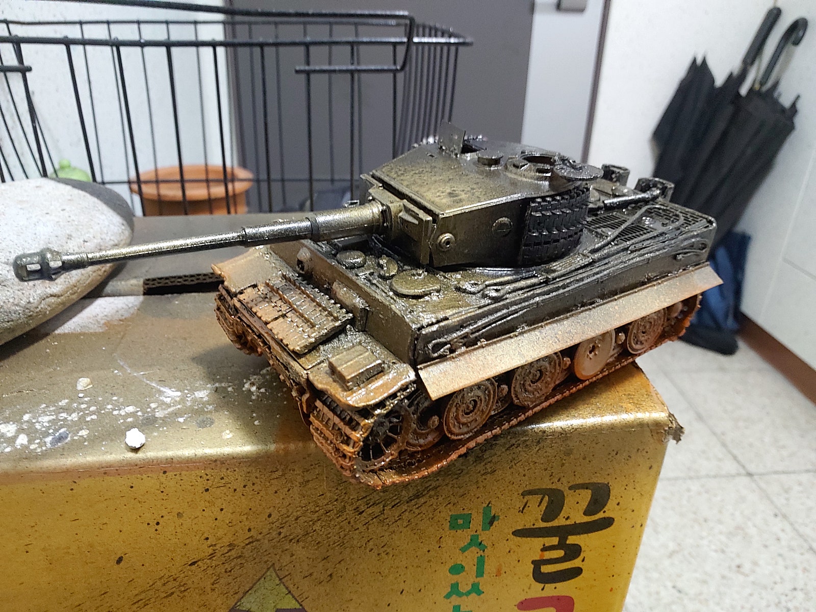 단색은 몇번 해보았는데 위장무늬를 넣을시 어떻게 될지 아직알수없습니다 다크옐로우 다크그린 레드브라운을 넣을생각입니다.집중을해서 색감을 놓치지말고 자연스럽게 금색이 우러나오게 칠할 생각 입니다.들인노력에비해 쉽게 결과물을 얻을수있고 자칫 도색이 지루할수있기에 색감의 변화를 유도할 생각입니다.