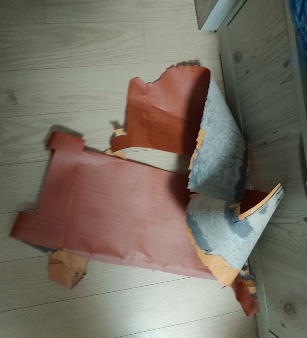 골판지가 조금 우둘두둘한부분이 있었는데 이부분이 말썽 이더군요! 결정적으로 시트지 색상이 너무 맘에 안들었습니다 지금 어두운색상은 만족합니다.반드시 골판지가 매끌한 코팅이된 골판지가 더욱 유리합니다 그리고 저처럼 손상이가서 우둘두둘한 골판지는 시트지를 부치면 우둘두둘 해집니다