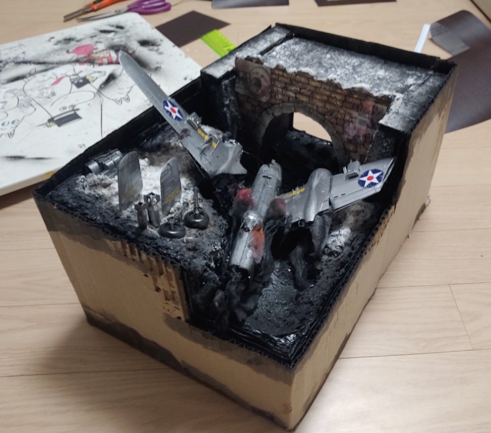 붙인뒤 안쪽면은 검정락카로 비스듬히 위에서 아래로 칠해줍니다.