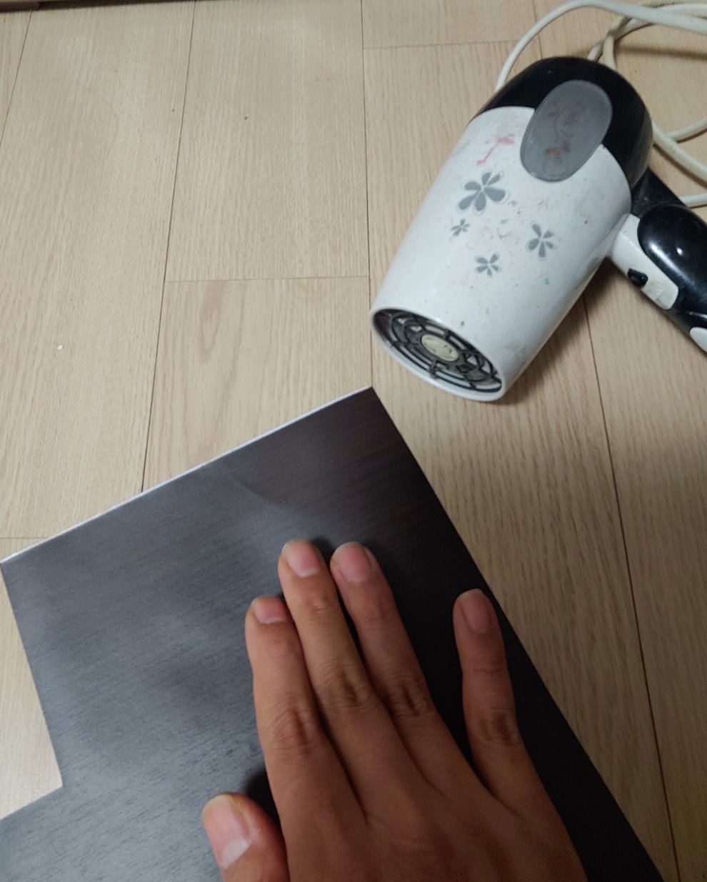 시트지의 종이를 벳겨내지않고 종이에다 록타이드 영구고정용 스프레이를 뿌려 주었습니다.