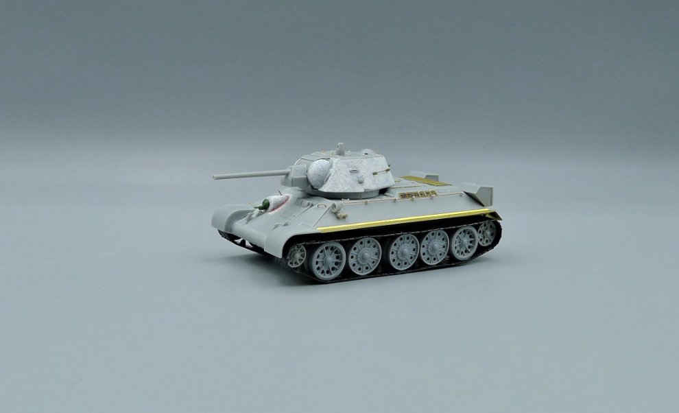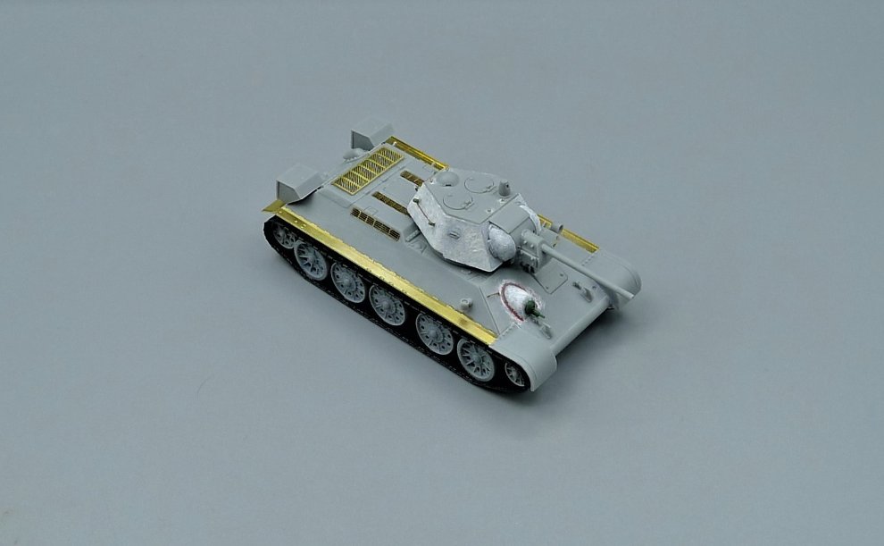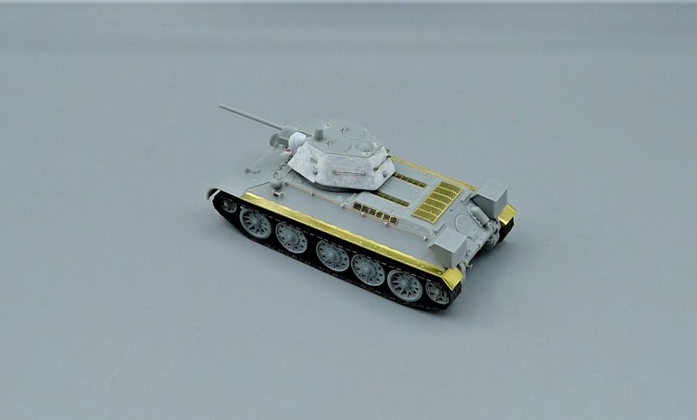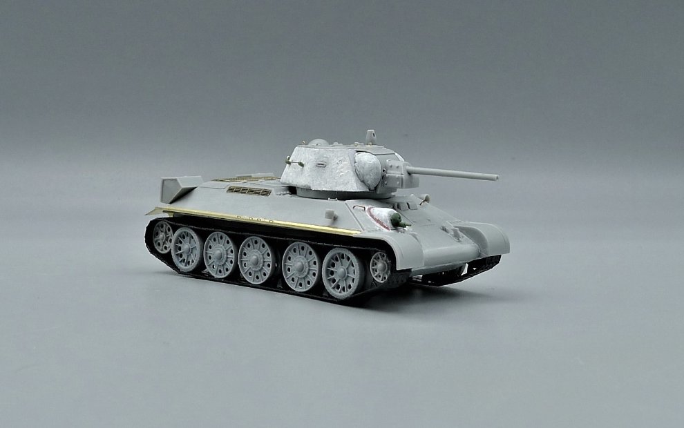 72스케일 T-34/76 1942년형을 조립해 보았습니다. 드래곤의 T-34 42년형인데 디테일 몰드가 너무 오버표현되어 있고 연질트랙이라 즈베즈다 휠과 궤도, 보이져사와 하울러사의 에칭 0.18mm 에나멜선으로 장비걸이를 만들어주었습니다. 악세서리는 아직 미부착 상태이고 약간의 질감표현만 해 주었습니다.