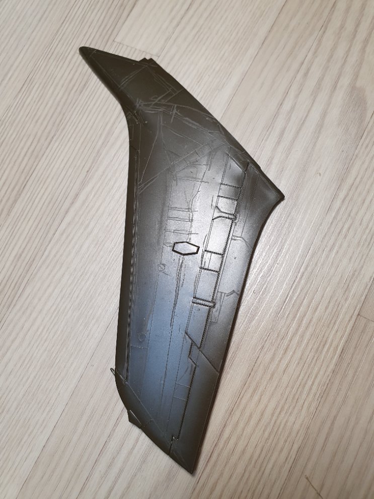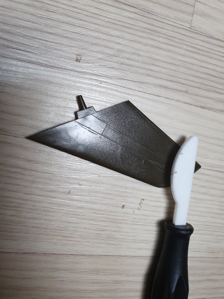 처음부터 파낼 선이 많은 동체나 주익부터 파기 시작하면 작업량에 질려 도중에 포기하는 경우가 생기므로 크기가 작고 선이 몇 개 안되는 수평 꼬리날개 부터 파기 시작하면 성취감도 들고 재미도 붙게 됩니다.