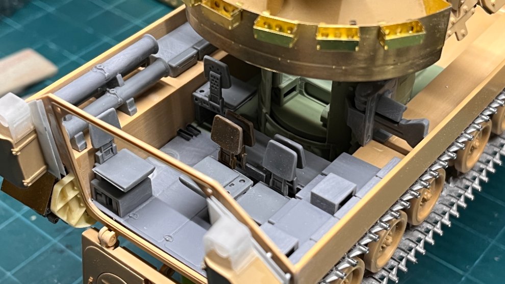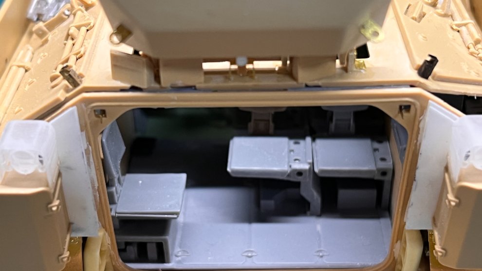 실내는 해치를 열어놓아도 대부분 잘 보이지 않으므로, 가급적 Tamiya의 부품을 써서 OOTB로 만들어주었습니다. 사실 이 사진을 보시면 아시겠지만, 작년에 M2A0를 만들 때 조금 더 디테일을 살려보려고 MENG의 M3A3 인테리어세트와 부품을 섞어서 만든 부분도 있습니다. 덕분에 포탑 안쪽의 인테리어를 만들어줄 수 있었지요.