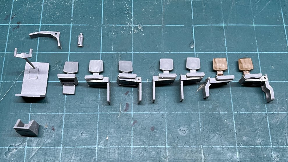 원래는 Eduard의 에칭부품을 써서 접힌 형태의 의자를 만드느라 부품을 가공해놓은 것들이 있어서 아카데미과학의 M2A0 Bradley 키트의 인테리어부품에서 등받이 두개를 빌려왔습니다.