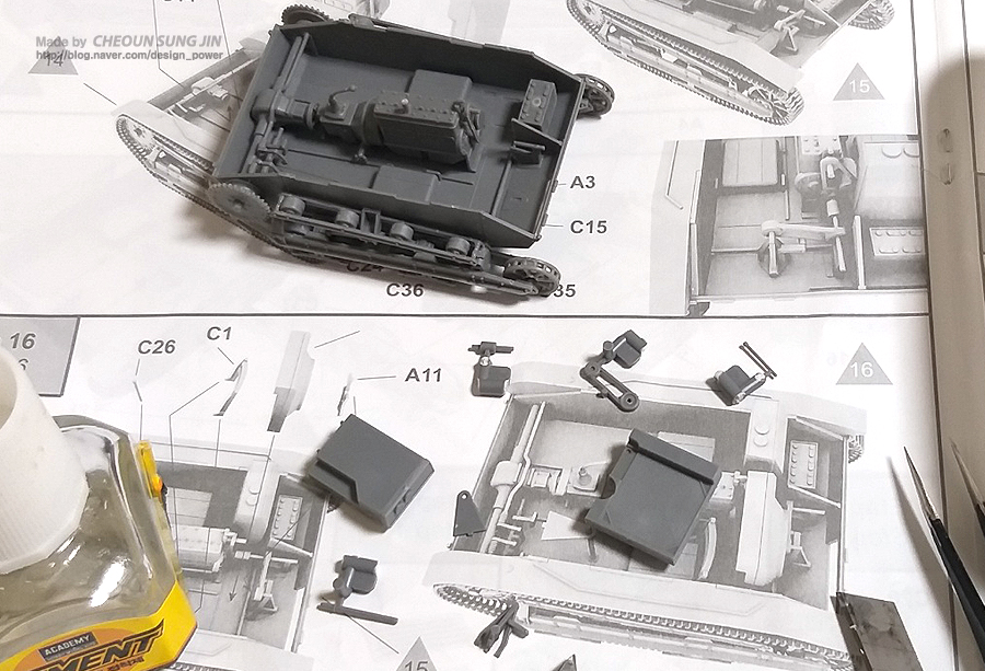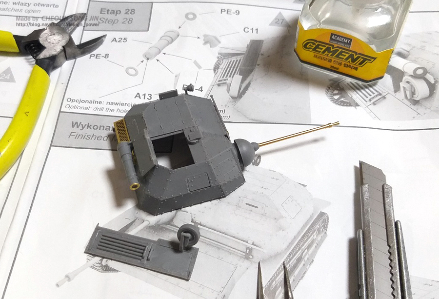 추후 도색 작업을 위해 일부 가조립한 상태이며