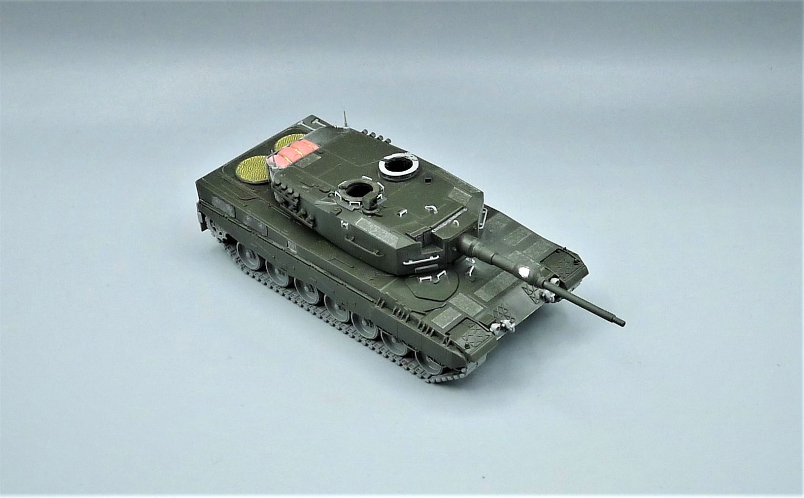 레벨사의 1/72 레오파드 2A4입니다. 오래된 매치박스사의 재포장으로 알고 있습니다. 올드 제품답게 티테일등이 많이 떨어집니다. 특히 하부 부품들이 투박해서 타콤 레오파드로 올 교체했습니다. (타콤 차체하부+레벨 차체상부) 추가로 에듀어드의 전용 에칭도 사용했는데 에칭역시도 투박해 소량만 사용했습니다. 약간의 추가 공작을 여기저기 해주었고 포탑 바스켓 모포류를 에폭시 퍼티로 만들어 주었으며 AFV CLUB의 미끄럼방지 몰드를 잘라서 차체상부 포탑상부에 붙여주었습니다. (섬세한 몰드라 72킷 사용해도 어색하지 않았습니다.)