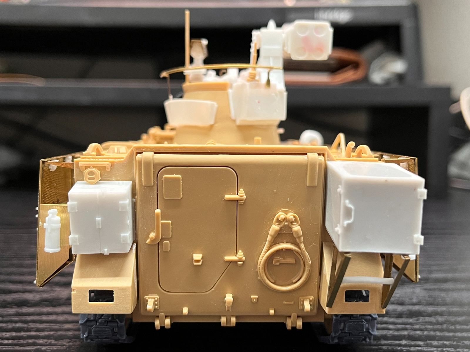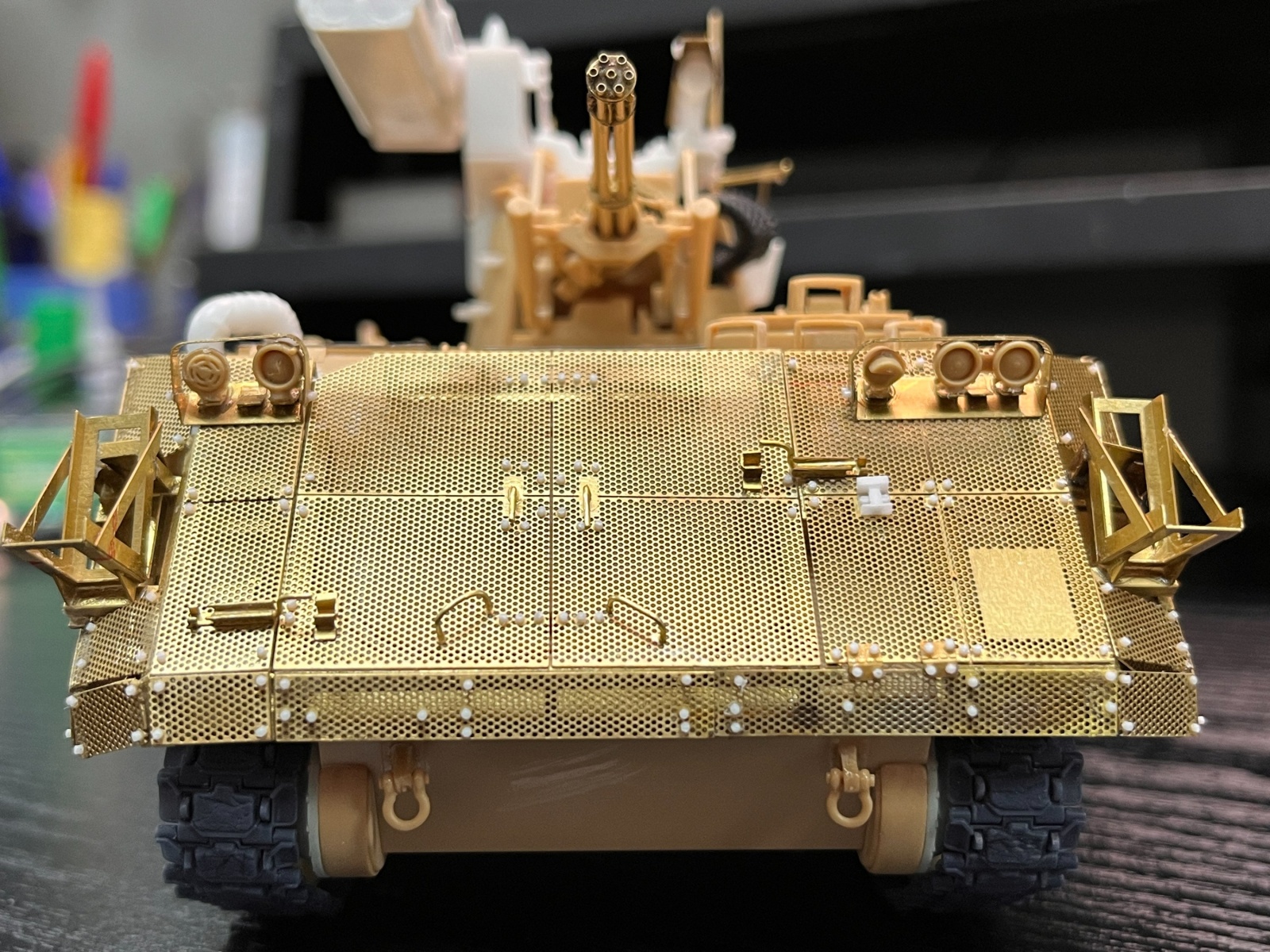 에칭부품을 가공해서 해치를 연 것 같이 표현했던 부품은 이럴 줄 알았으면 에칭부품을 분리한 상태에서 레진제 육각볼트를 붙이고 장갑판을 덧붙여줄걸 하는 아쉬움이 좀 있습니다.