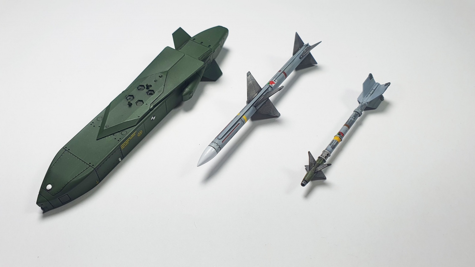 여러가지 무장 셋업 중에서 고민하다가 타우루스 스페로우 사이드 와인더를 선택했습니다. 타우루스 미사일은 데프모델의 제품인데, 국내에서 구하기도 쉽고 조립도 쉽고 동봉된 데칼도 만족스럽습니다. 도색은 그린계열로 했는데요 스페인공군이 운용중인 타우루스 사진을 보면 거의 그린계열이고, 탄체에 노란 띄도 없는 사진이 많더라구요. 사이드 와인더는 키트에 포함된 제품이고 스패로우는 amk의 무장세트에서 가져왔습니다ㄱ