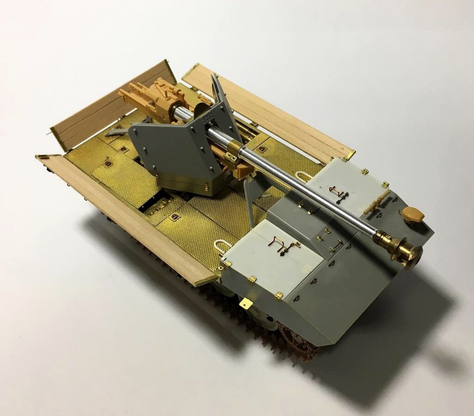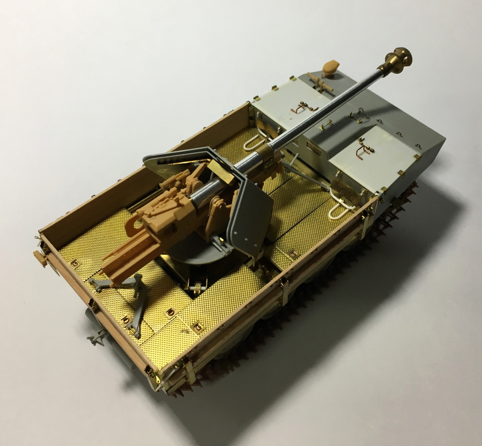 RSO 차체 프레임 위에 Gun mount가 얹혀지는 형태로써, 인젝션 부품에 비해 디테일이 월등한 에칭 부품을 사용했습니다.