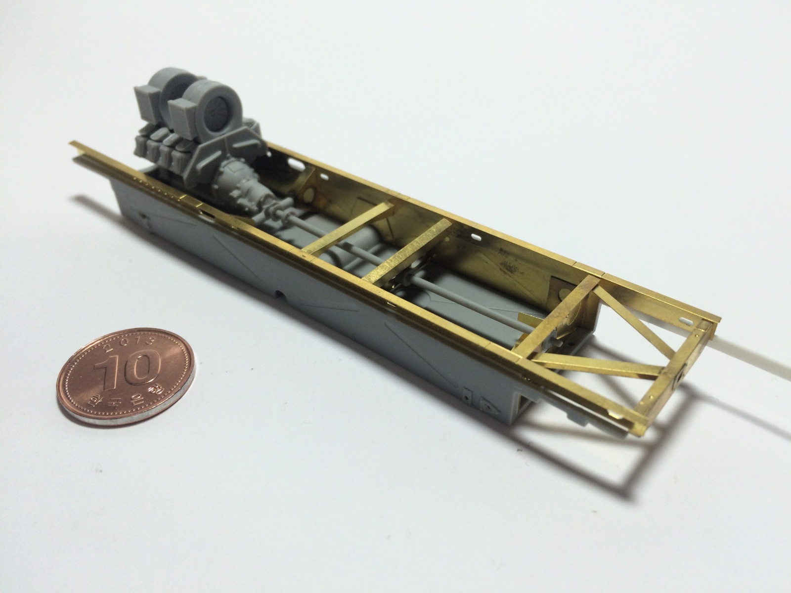 Cabin 후면에 설치된 간이의자(?)의 지지대는 중앙부에 위치하는 것이 합리적일 것 같은데, 대전 차량 중에 작례처럼 한쪽으로 치우쳐서 설치된 차량을 본 적이 있어서 그 차량으로 재현해 봤습니다. 아마도 실제차량이 Cabin과 Platform을 별도로 조립한 다음에 차대에 올려놓다 보니 아마도 이런 오류(?)가 발생하지 않았나 추측해봅니다.
