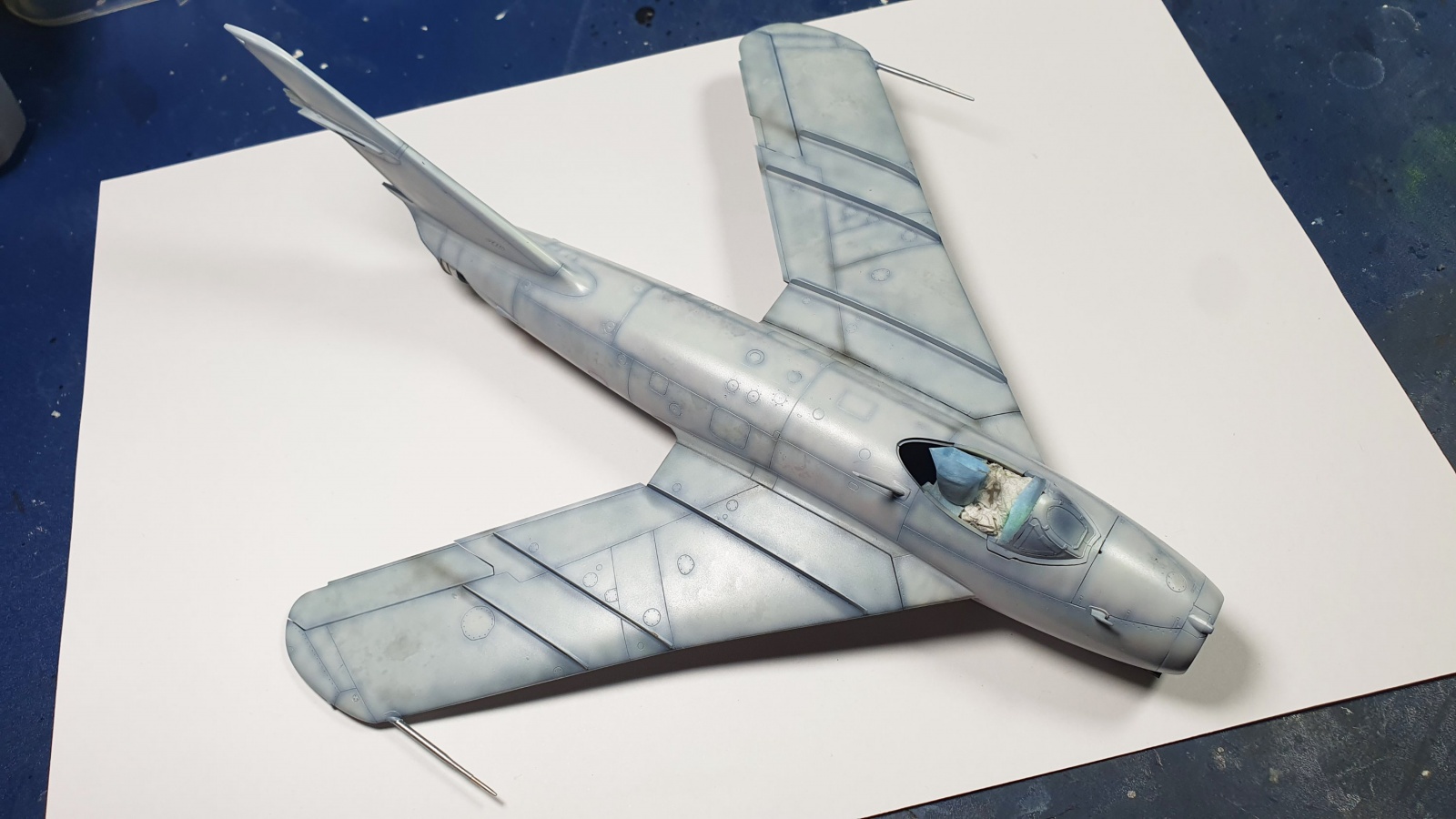 알제리공군 mig-17의 기본도색을 끝냈습니다 상면은 회색에 하면은 금속색의 특이한 조합입니다.