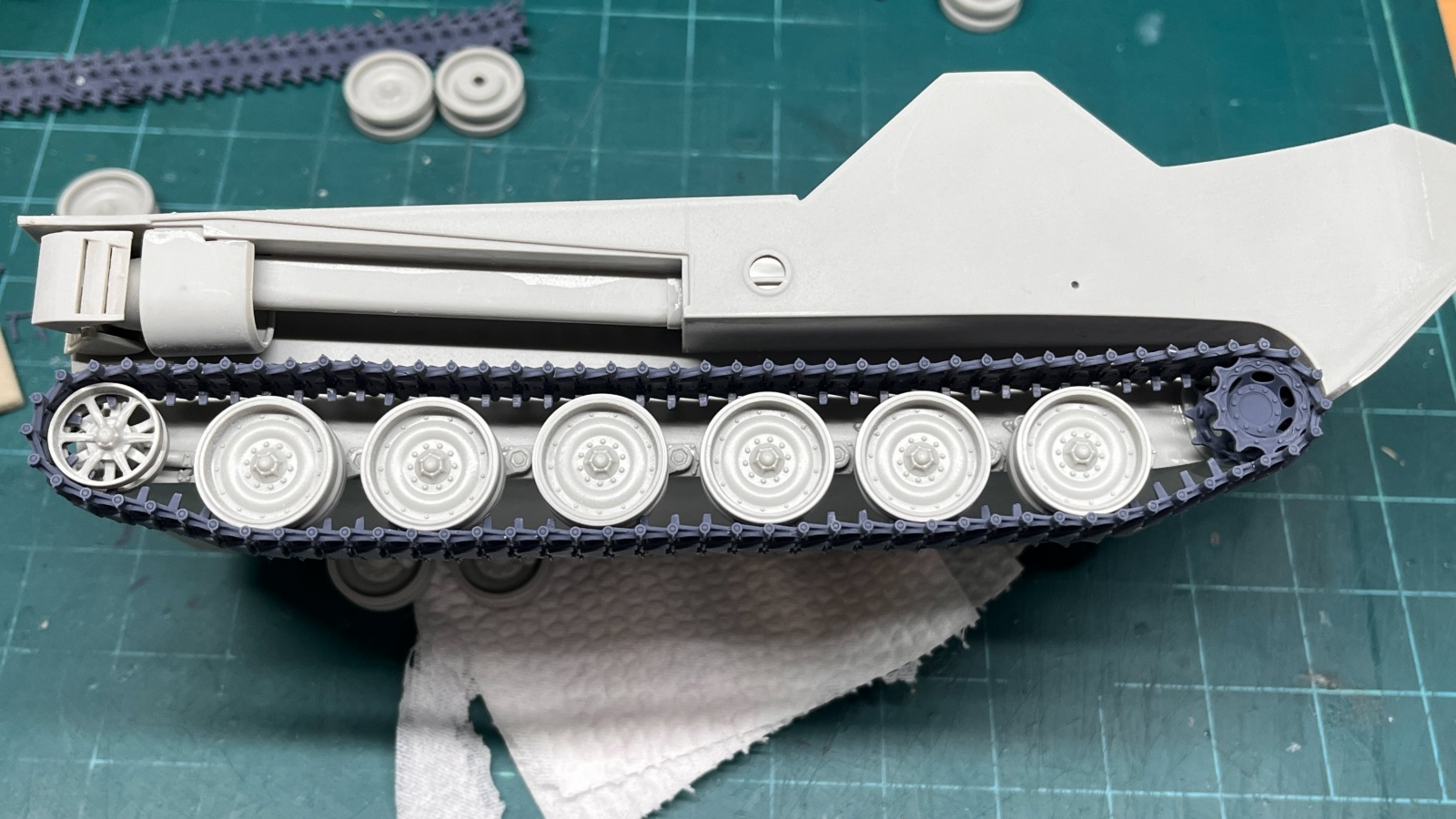DEF Model의 궤도를 잘 결합해주고 나서야 비로소 차체앞의 장갑부품을 붙여줄 수 있네요.