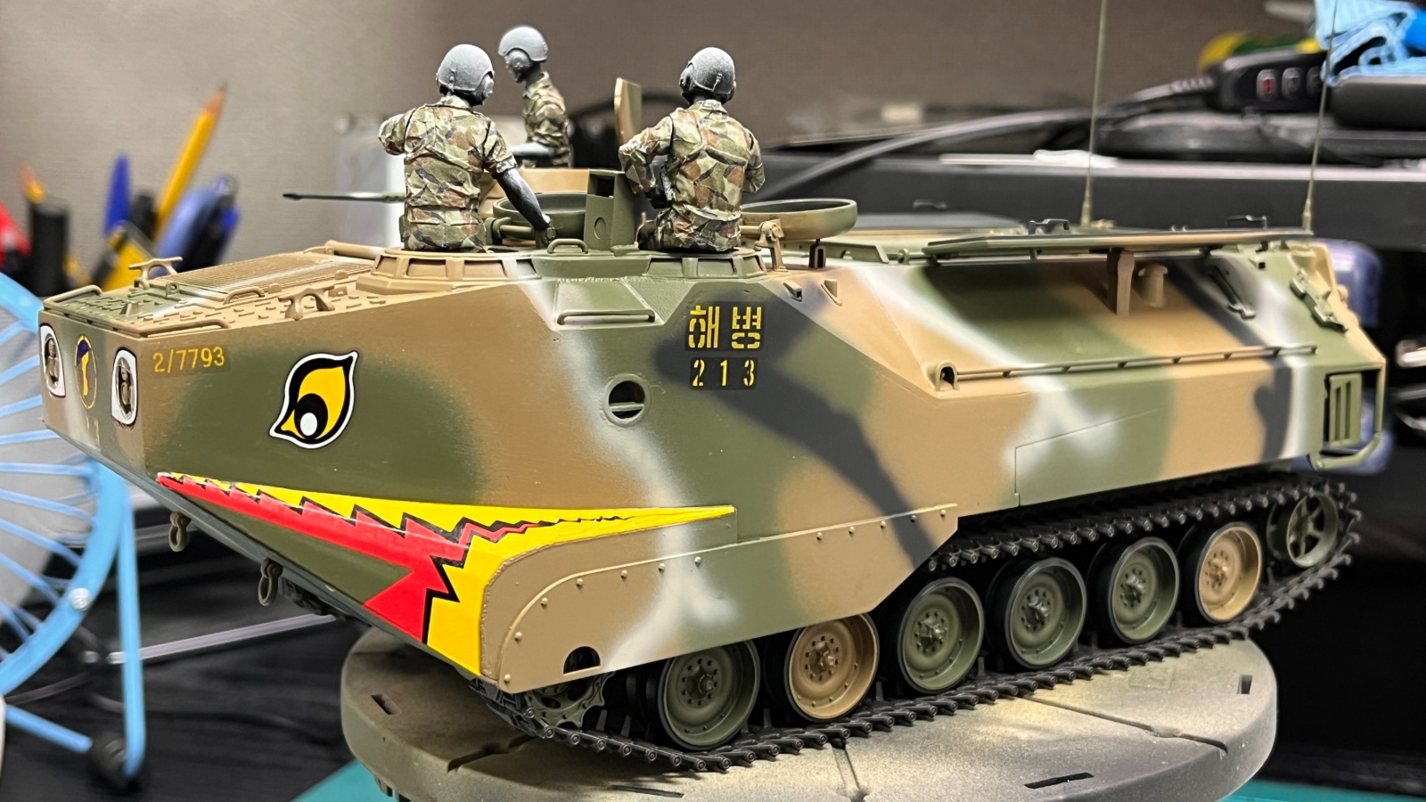 아카데미과학에서 90년대 초반에 발매했던 차량의 번호를 그대로 베꼈습니다. 저 213번은 해병1사단 상장대대 2중대 1소대 3번 차량을 의미한다고 합니다. 거꾸로 아카데미과학의 설명서를 보니 1984년 국군의 날 행사에 사용된 차량의 번호를 제품화했다고 합니다.