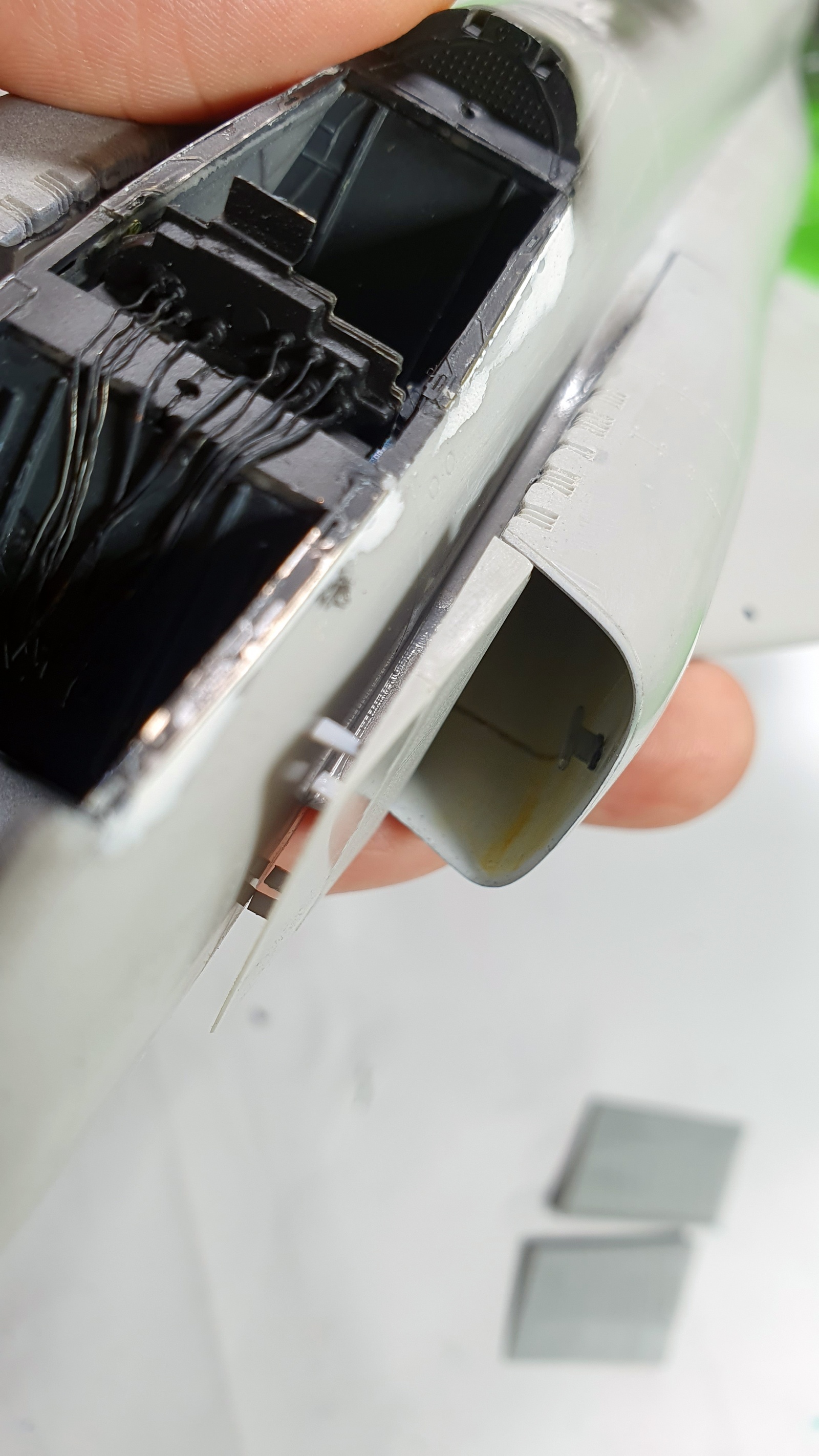 우측 몰드를 기준으로 동체 부품을 따내고, 투명런너를 깎아서 박아넣었습니다, 안에 전구가 2개 있는 것으로 보여 구멍을 2개 뚫고 은색 도료를 채워넣었구요