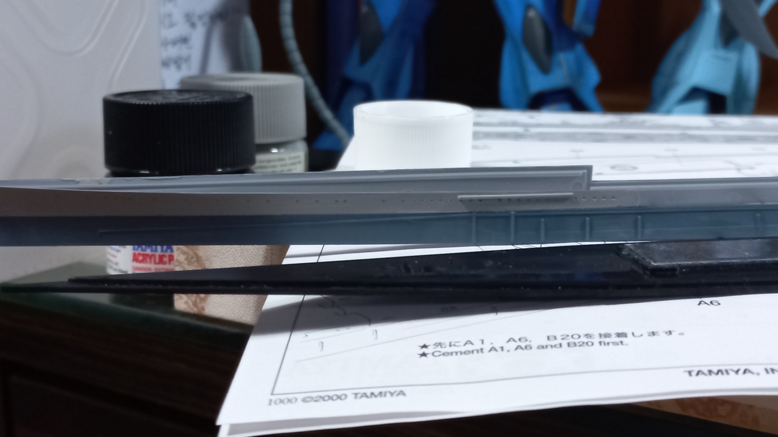 회색은 타미야 아크릴 스카이 그레이, 파란색과 덱 블루는 그냥 미디움 블루로 칠합니다. 이번에도 붓...