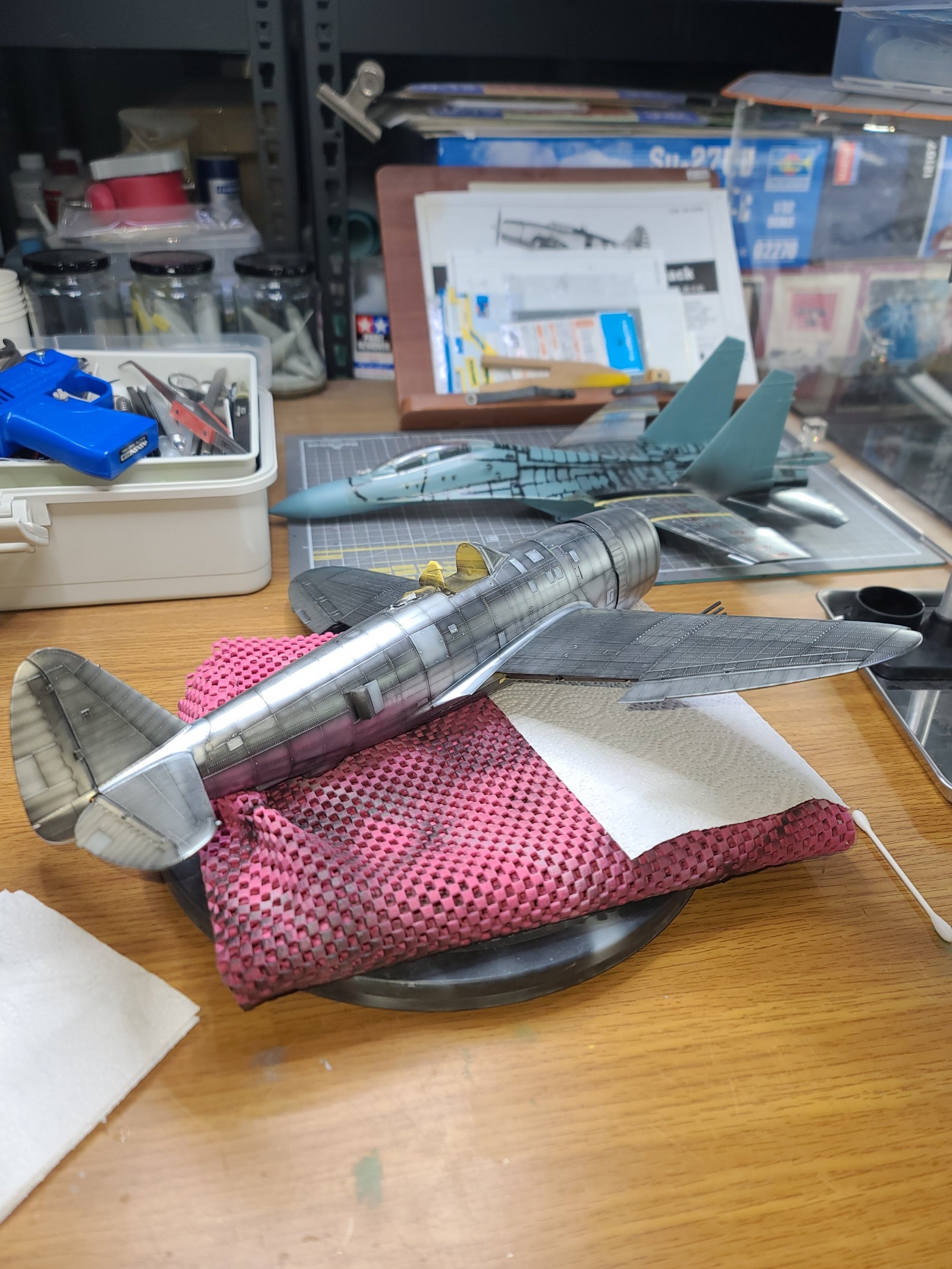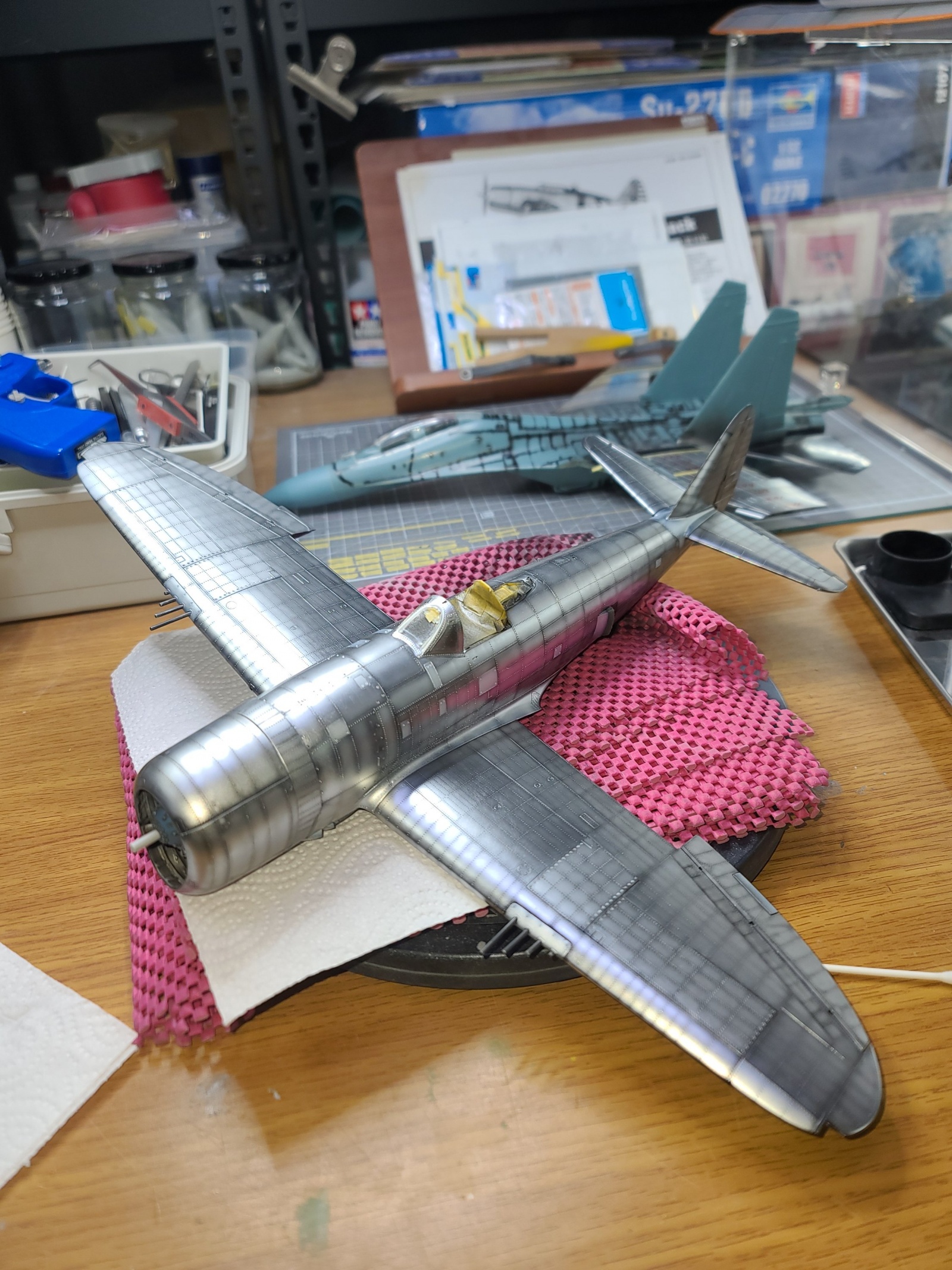은색 기체의 도색을 공부하려고 만들어본 p-47이었습니다.