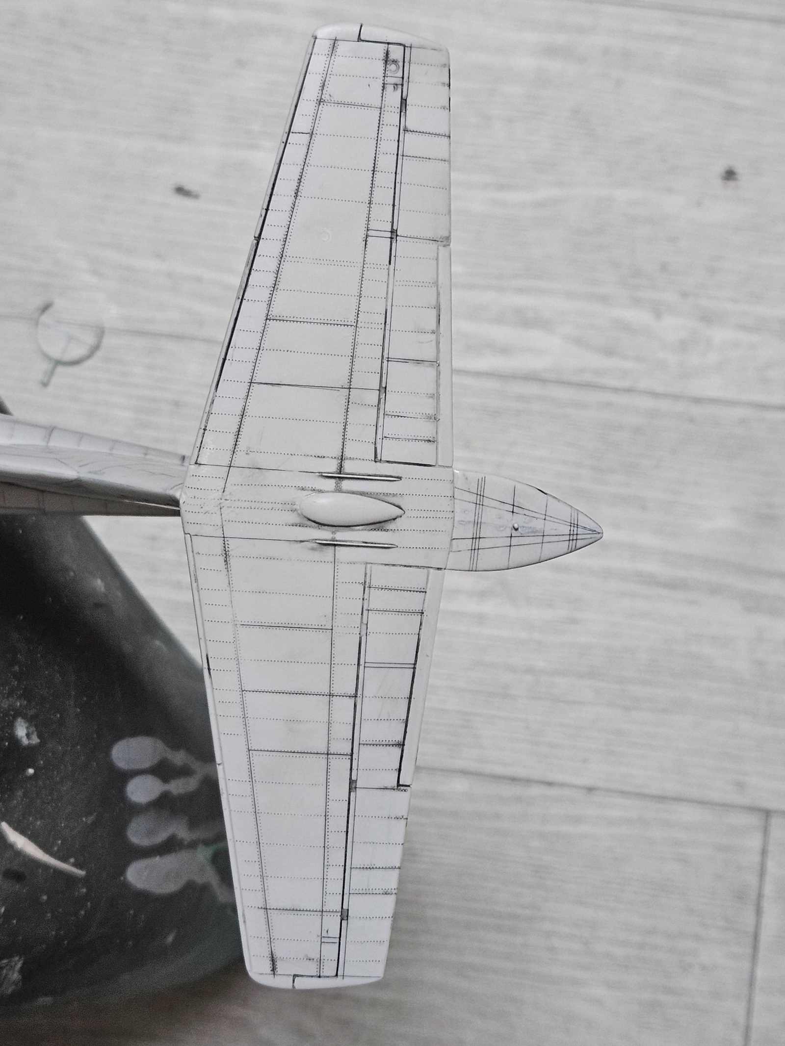 동체에 산재한 리벳들은 모두 깎아내고 0.55mm 리벳롤러와 하세가와 철필, 하세가와 1/48용 엔그레이버,15cm철자,곡면 선파기용 알약 타블렛 을 이용해 파냈습니다.