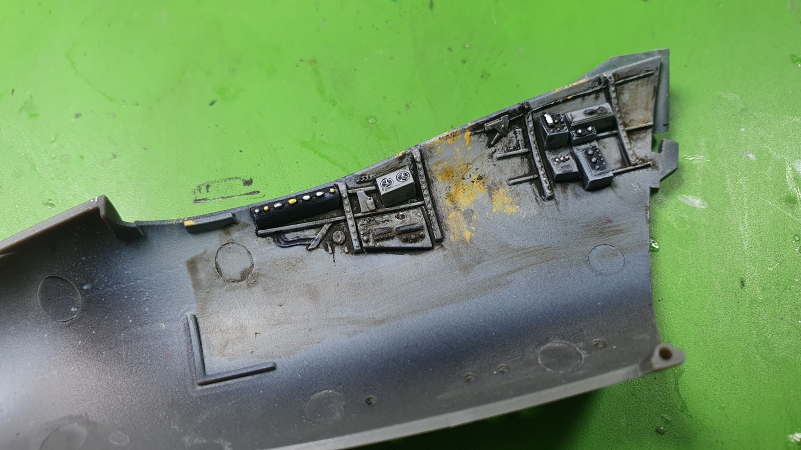 안녕하세요 버케니어의 작업을 시작했습니다. 사출좌석은 메탈릭디테일사의 3d프린팅 제품인데 처음 써보는 브랜드입니디만 출력 상태가 썩 좋지 않네요, 키트 부품보다 조금 나은 정도입니다. 배쓰텁에 붙이기 위해선 원 키트의 사출좌석의 부품들을 조금 이식해서 가공해야 합니다.
