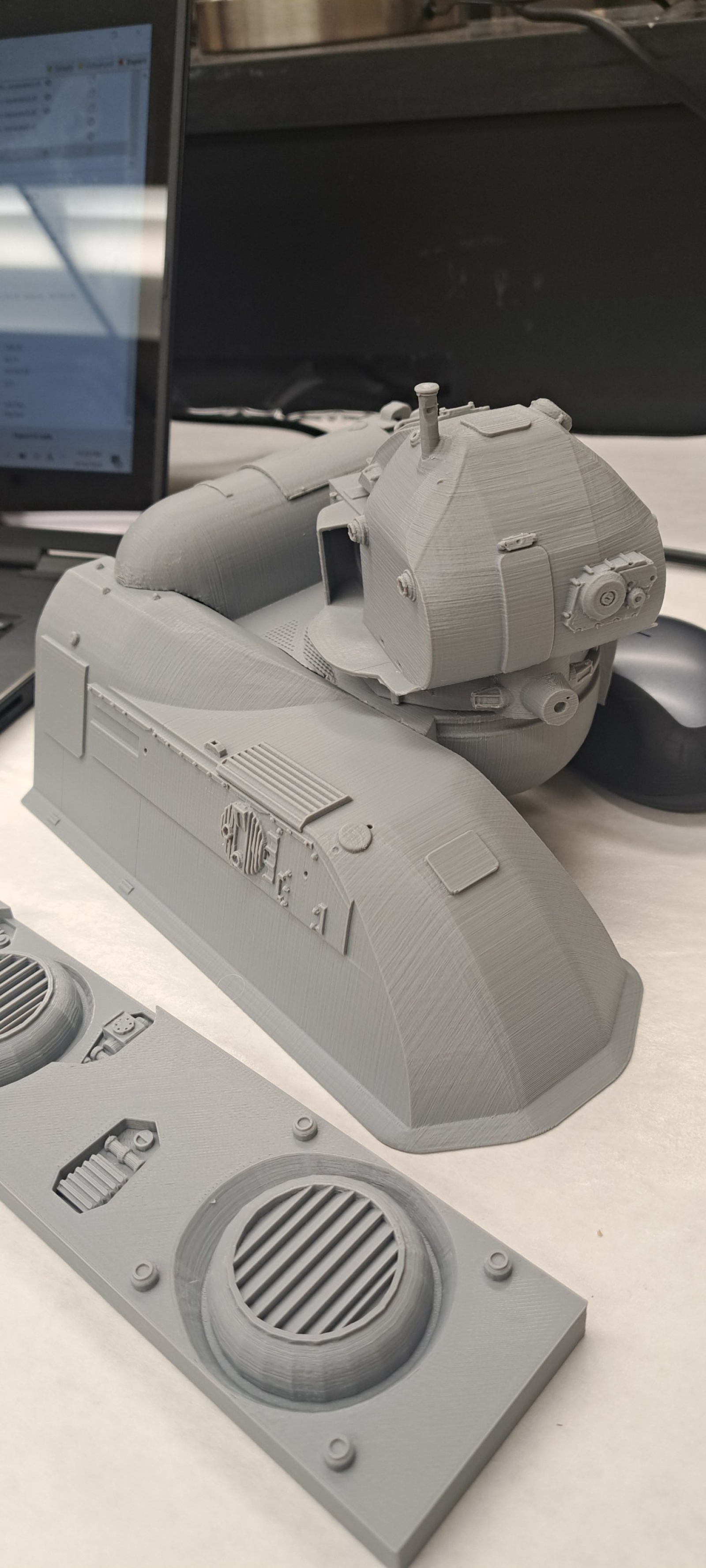 또한 후가공 중 광조사로 인한 뒤틀림과 수축 또한 문제겠습니다. 빌드 플레이트도 작으므로 결국엔 1/72 정도로만 출력이 가능합니다. 레이어 라인도 0.05미리로 해도 보입니다.