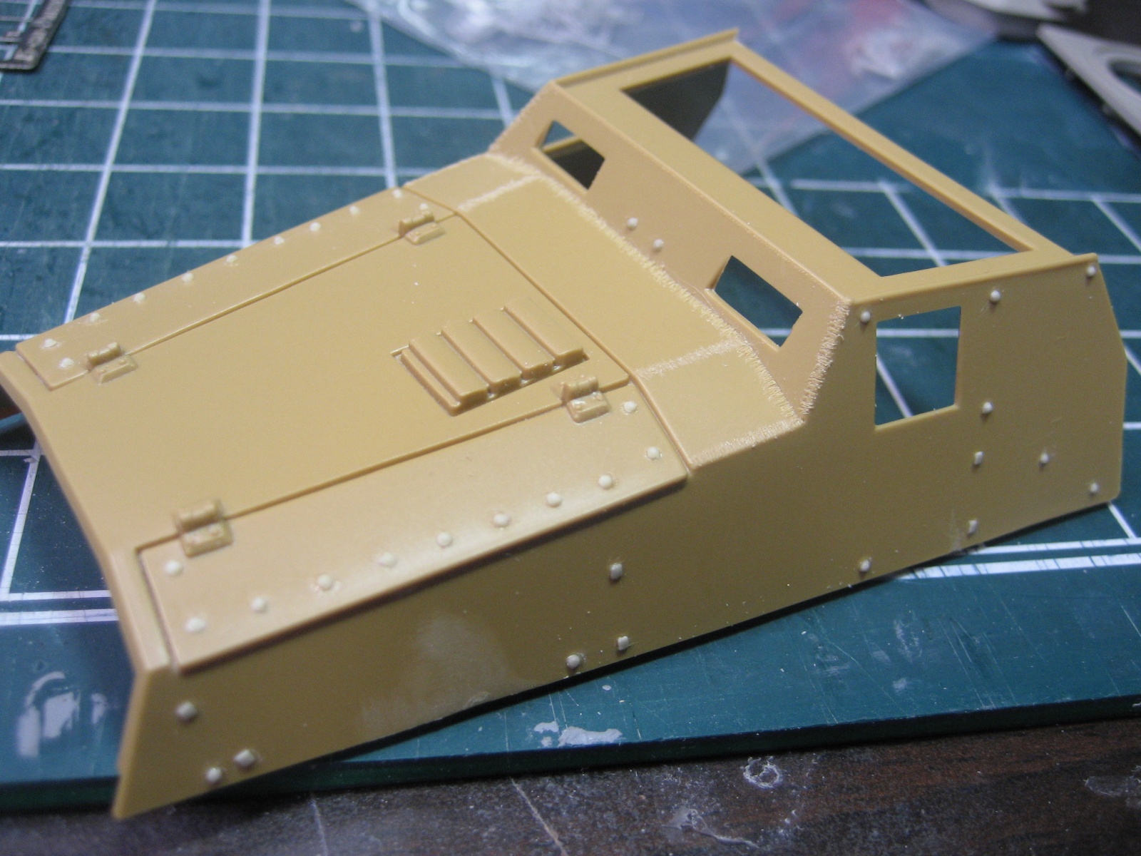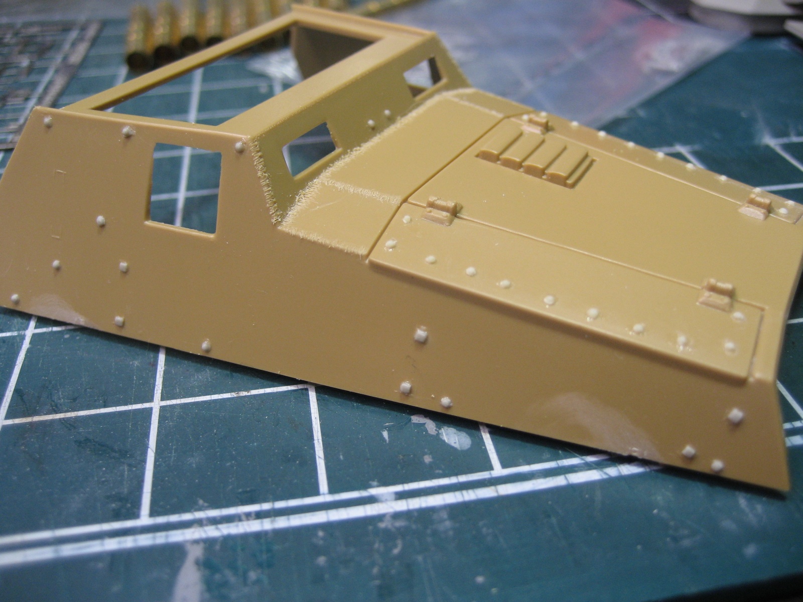 아직 많은 작업은 진행되지 않고 부분적 으로 진행중입니다 우선은 기존의 리벳을 모두 제거 하고 추가 리벳을 작업하였고 로켓런처 작업중입니다