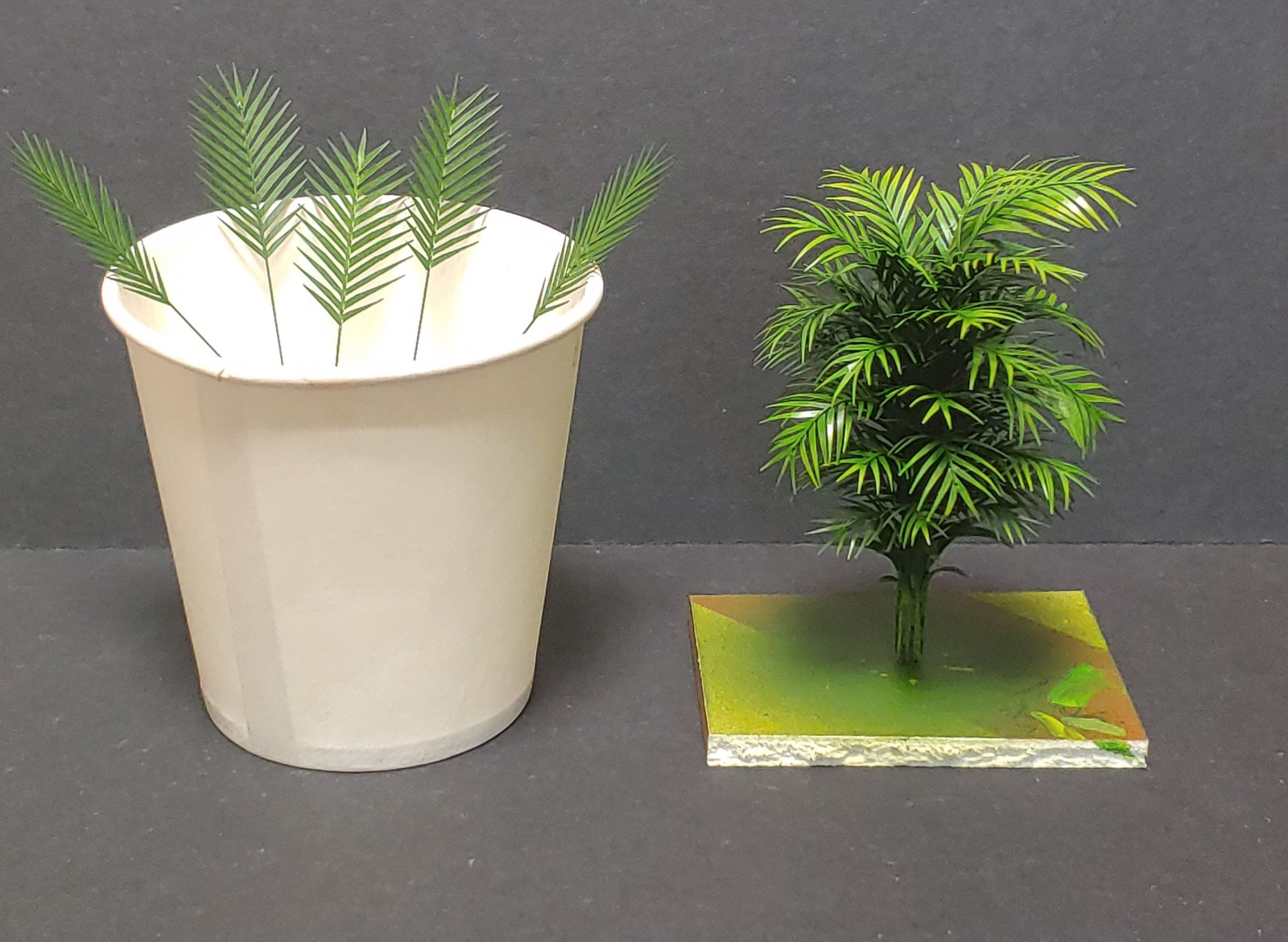 아레카야자라는 식물입니다. 이런 작업을 좀 해보지 않아서 이런 저런 연구 끝에 비교적 만족스럽게 결과물이 나온거 같습니다. 도안 없이 그냥 아트나이프로 제단해서 만들었습니다. 4그루 만드는데 크기별로 잎줄기 120개 넘게 만들었네요.