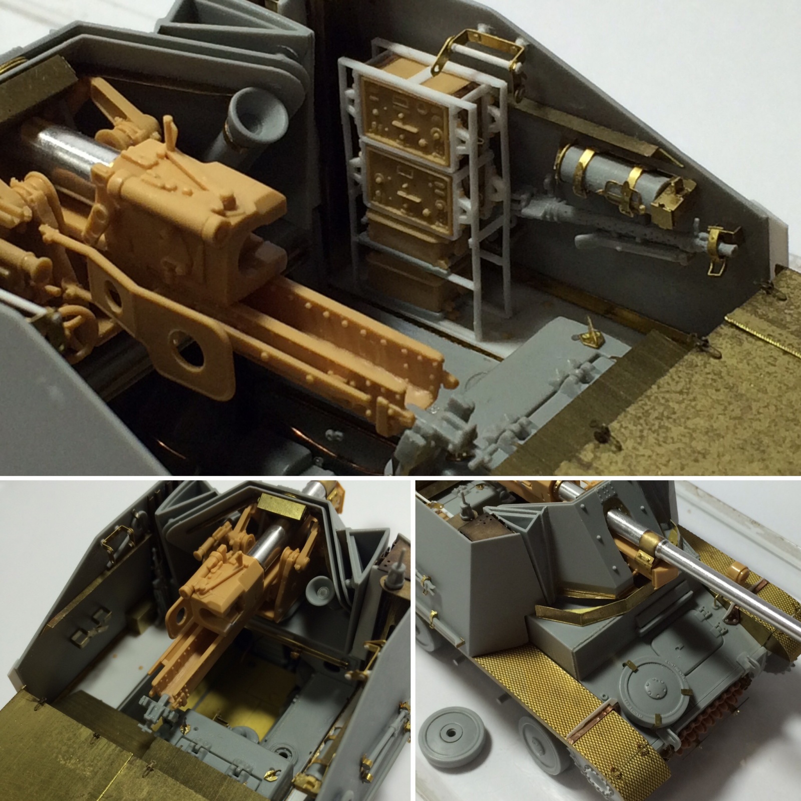 Marder III Ausf.H와 같이 이 제품을 제작하던 당시에는 아직 1120 PRODUCTION의 Fu5 / Fu16무전기 세트를 인지하지 못했던 터라 TRISTAR의 Marder III Ausf.H 제품에 포함된 인젝션 부품으로 제작했습니다. Rack은 프라판으로 제작해주었는데 시간이 꽤 지나서인지 노랗게 변색됐습니다;;;