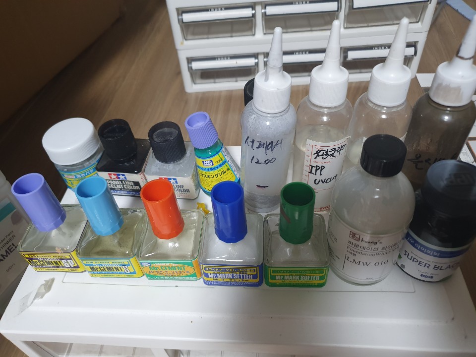 조색병에 들은것들 : ipp서페이서1200 100% , ipp무광클리어 60% , ipp유광클리어 70% , ipp올리브드랍 35%