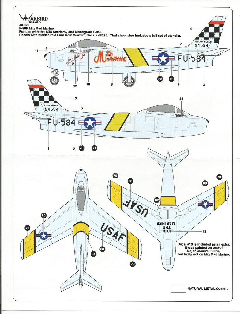 2. Warbird 1/48 F-86 Sabre "Mig Mad Marine, Darling Dottie"...........10,000원 (설명서 복사본)