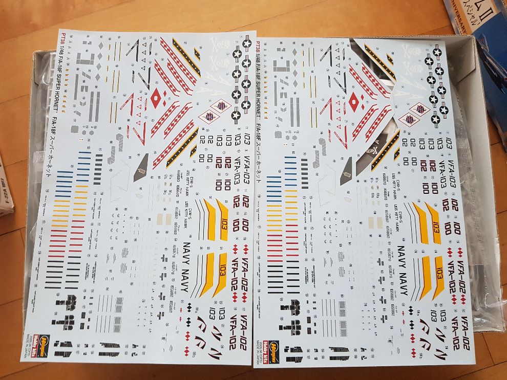 F/A-18F 두대가 들어있습니다. 데칼한장이 다이아몬드백스 부분이 없는데 두대다 다이아몬드로 만드실거 아니면