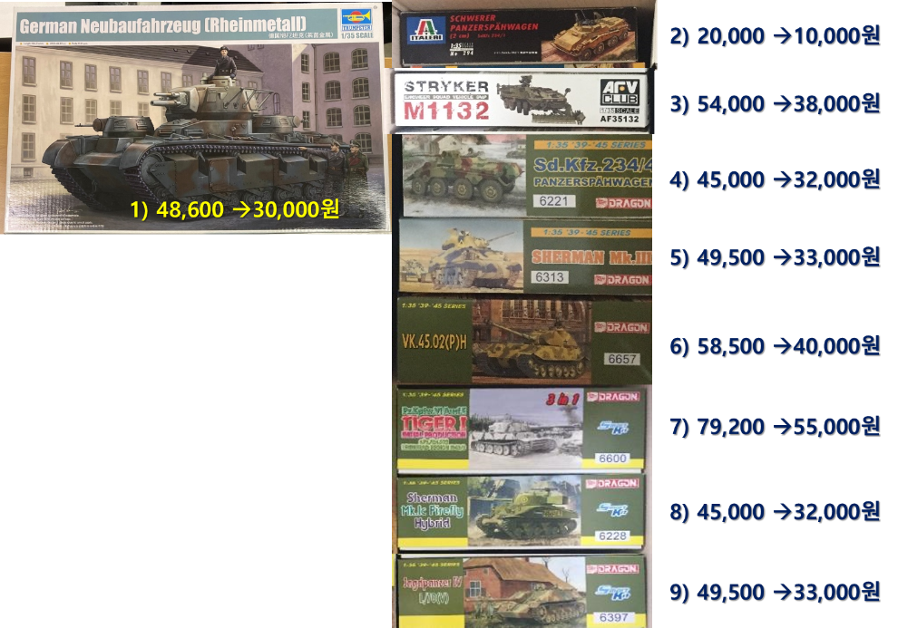 사진의 키트들을 판매하고자 합니다.