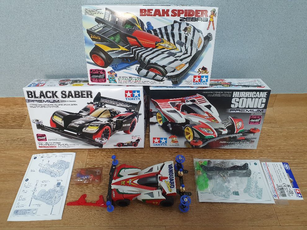 타미야 미니카 입니다. 비크 스파이터, 블랙세이버 프리미엄, 허리케인 소니 프리미엄은 미조립 새상품입니다.