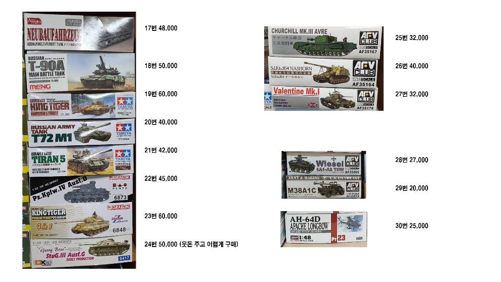 거의 대부분 정가 주고 구매 한 제품이거나 웃돈 주고 구매 한 제품이라 엄청 할인은 못해드립니다. 그런 만큼 킷 보관 상태는 좋다고 말씀 드릴 수 있습니다.