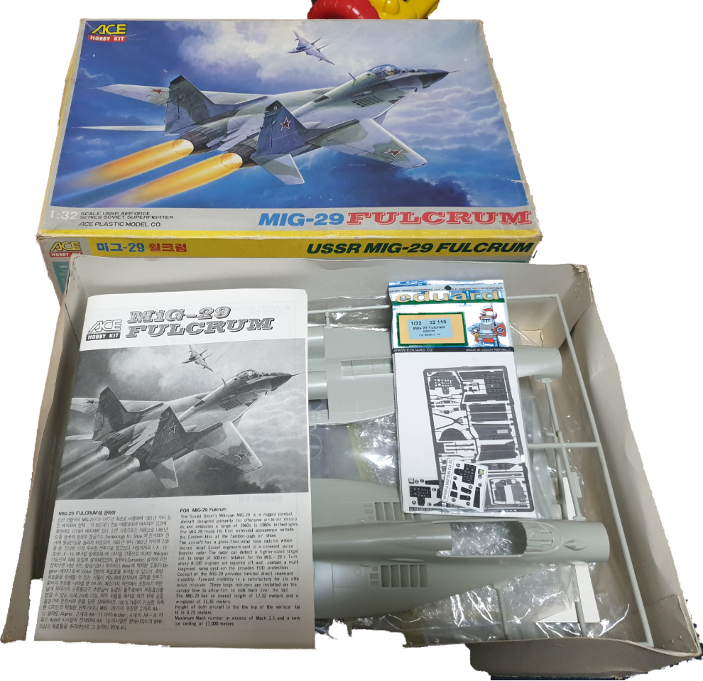 레벨제품과 동일한 ace사 미그29입니다 에듀아르드인테리어포함 입니다 동체비닐만 개봉이며 런너분리는 안되어있습니다