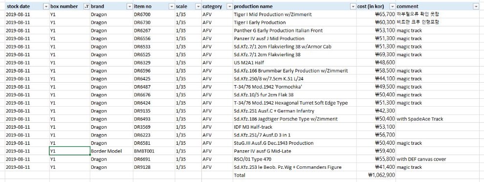 아래 도표에 있는 킷트 일괄 판매 합니다.