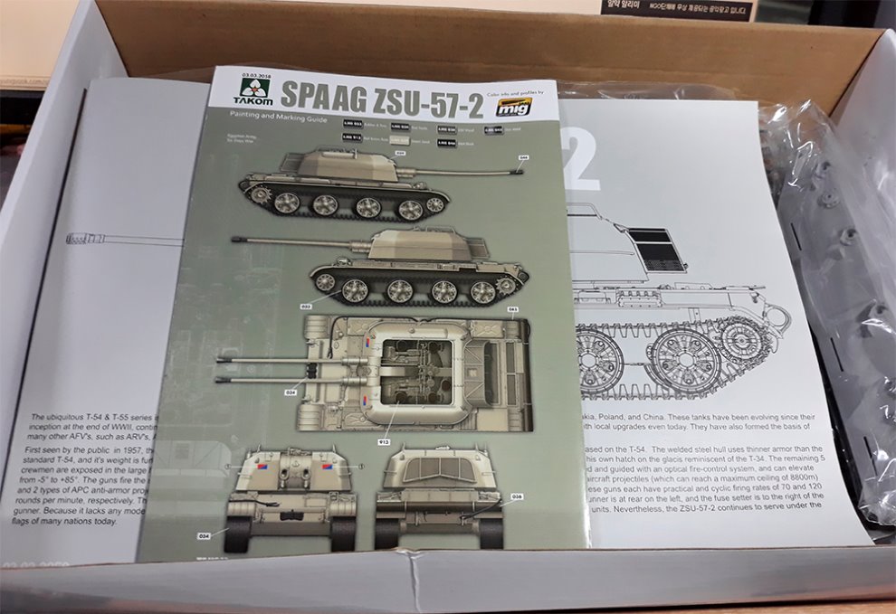 키트상태는 모두 A급이며, 타콤사의 T-55AM2B와 ZSU-57은 각 4만원(쇼핑몰 판매가 52,000)이고, 타미야사의 T-72M1은 배송비 별도 5만원(쇼핑몰 판매가 52,000)입니다. T-72M1은 사진에 보시는 것처럼 에듀어드제 에칭과 마스터클럽제 조립식 궤도가 들어있습니다.