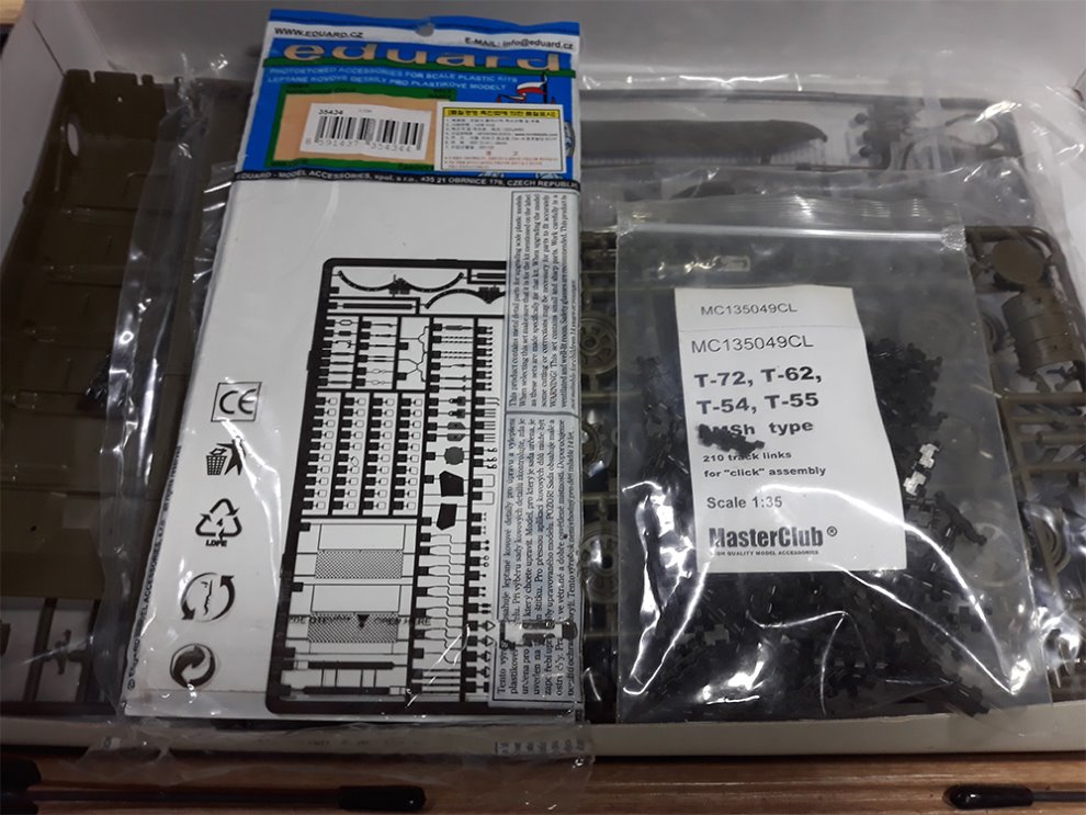 타미야 T-72M1(쇼핑몰 판매가 52,000)을 에듀어드제 에칭과 마스터클럽제 연결식 궤도, 배송비 포함하여 45,000원에 팝니다. 구매의사 있으신 분은 쪽지 주세요.