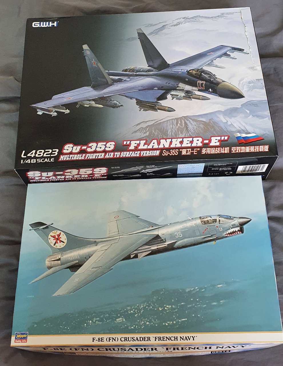 모두 장터에서 구한 제품입니다. G.W.H Su-35S는 사진처럼 상자 위부분이 찢어져 있으나