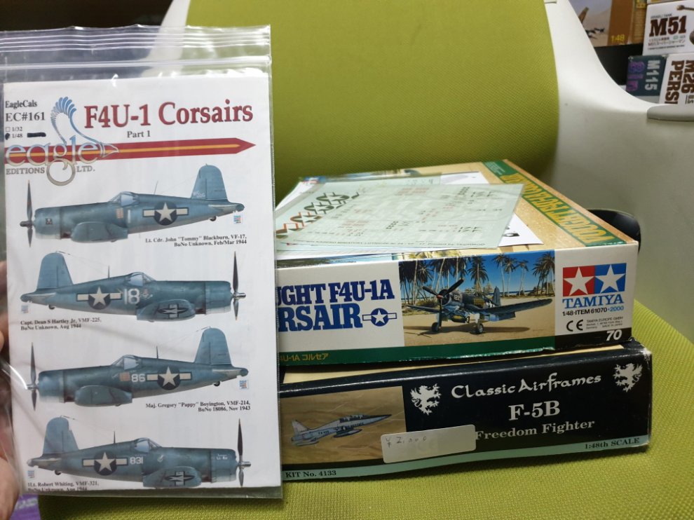 1. 타미야 1/48 F4U-1A (원래 킷 데칼 손상, 아카데미 F4U-1A 데칼 포함) + Aires 콕핏셋