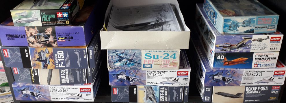 중앙: 타미야 미라지2000은 비닐개봉, 설명서복사본에 다른박스에 드리고, Su-24는 큰부품 분리입니다.