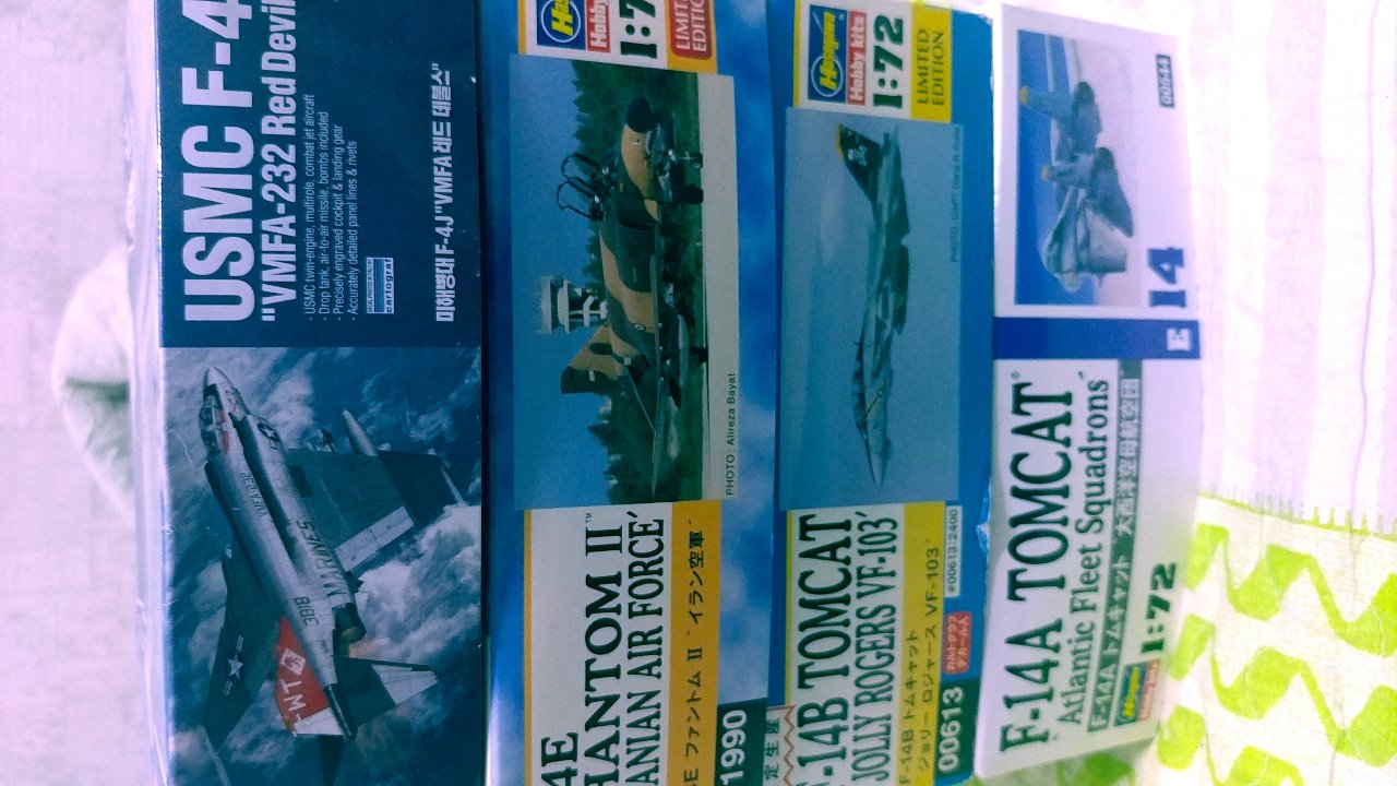 하세가와 F-14A와 F-4E는 박스상태 좋구요 하세가와 F-14B와 아카데미 F-4J 는 약간의 까짐과 구겨짐이