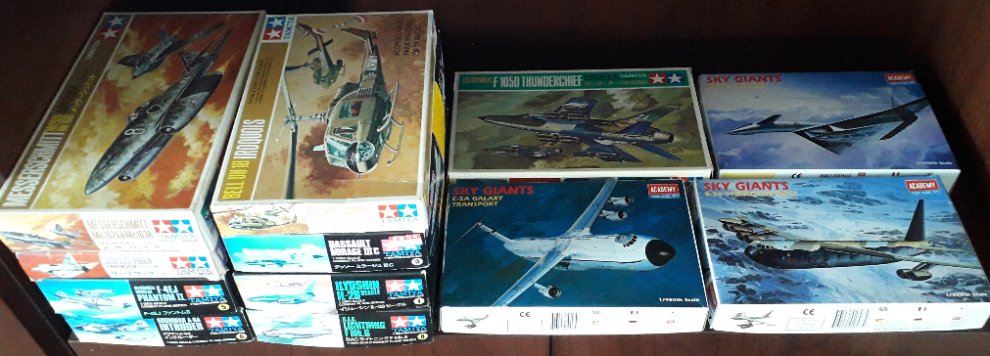 타미야 1/100 시리즈 9대와 아카스몰 비행기 시리즈 3대 입니다.