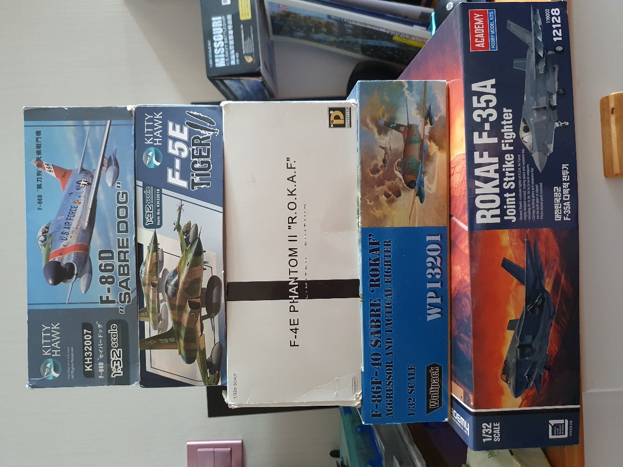 1. 키티호크 1/32 F-86D 판매가격 : 8만원(박스 상면에 찍힘으로 약간 찢어져 있지만 내용물은 이상 없습니다.)