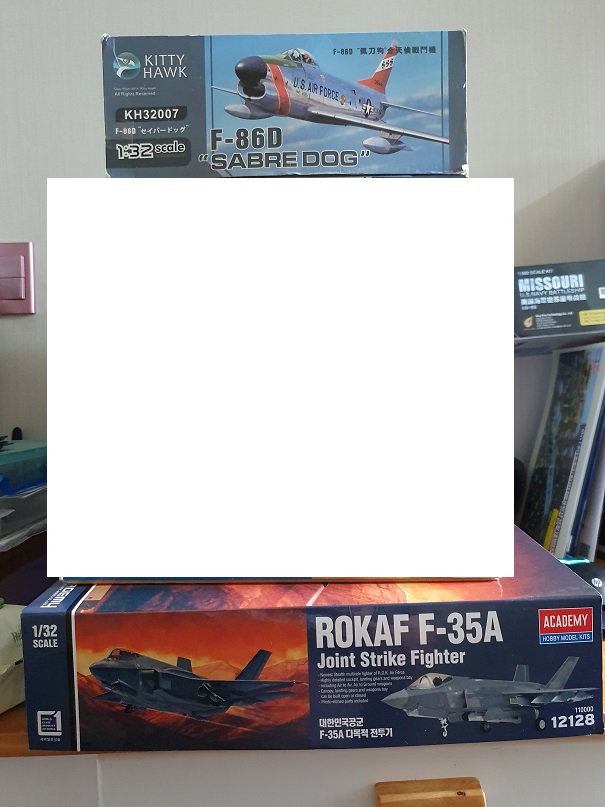 1. 키티호크 1/32 F-86D 판매가격 : 7만 5천원(한국공군 데칼 포함이며 박스 상면에 찍힘으로 약간 찢어져 있지만 내용물은 이상 없습니다.)