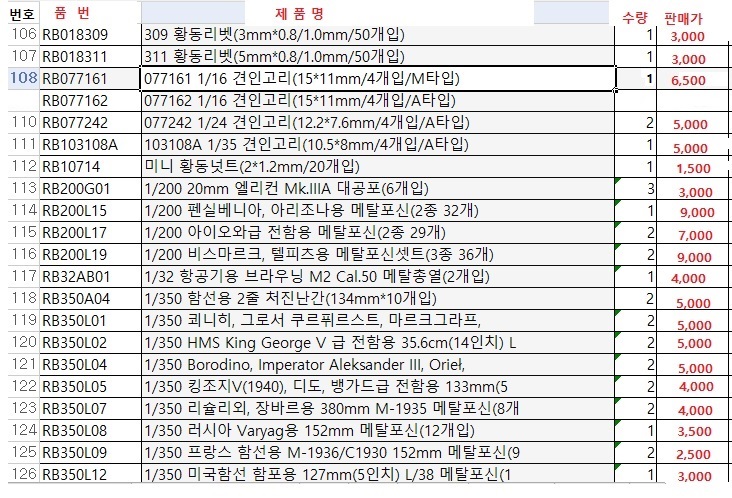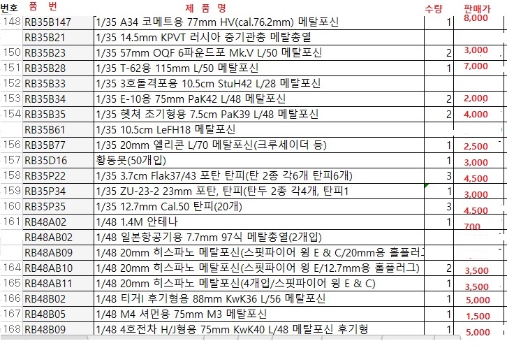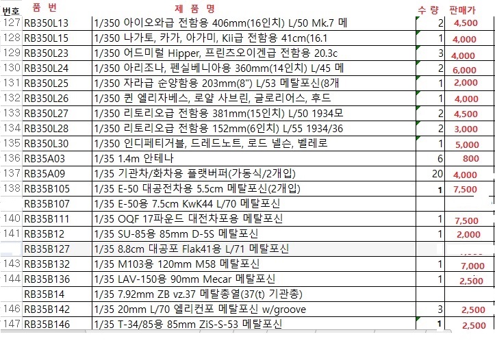 RB 모델 메탈옵션 판매합니다(밀리/배/비행기)