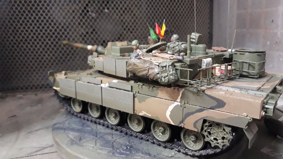 도색 및 웨더링 완료한 AFV 완성작 판매합니다.짐을 싣고 기동중인 계화보병사단 소속 K2 흑표전차 를 표현했습니다. 킷외에 사용한 제품은 별매 밀리터리 피규어,별매 레진 장구류,별매 메탈안테나,별매 오로라 스티커,별매 황동봉