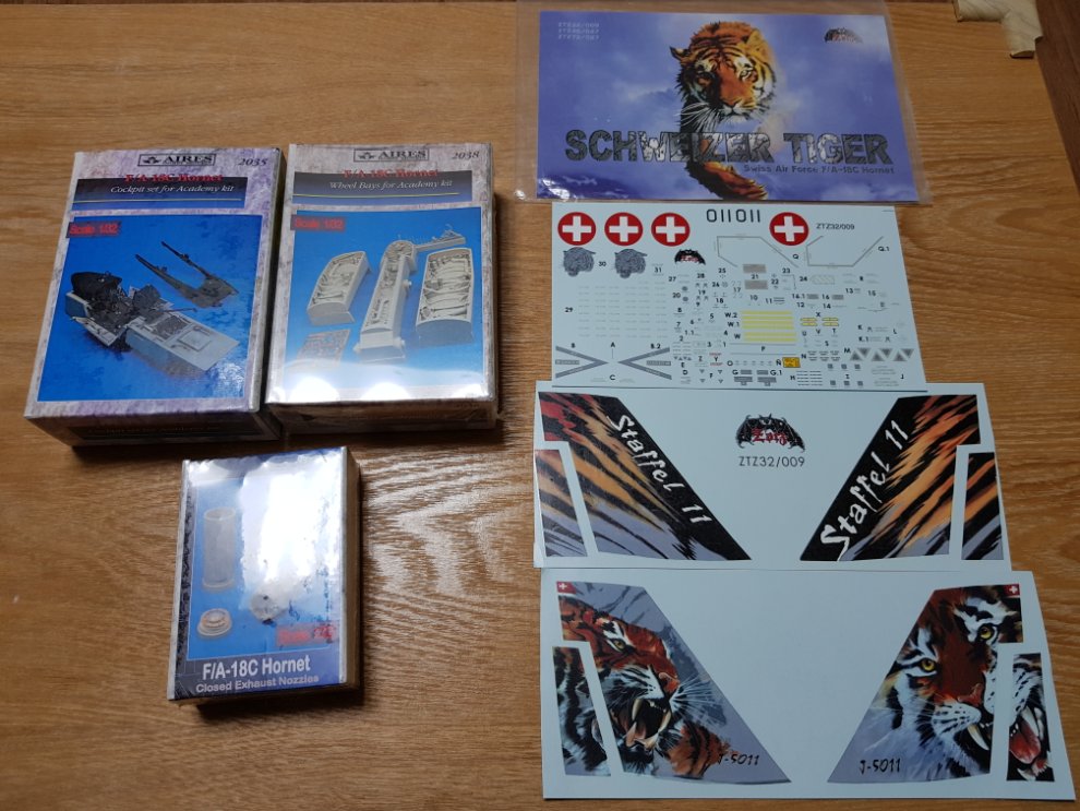 아카데미 1/32 F/A-18A+, Aires 레진 풀세트, 별매데칼 일괄로 판매합니다.