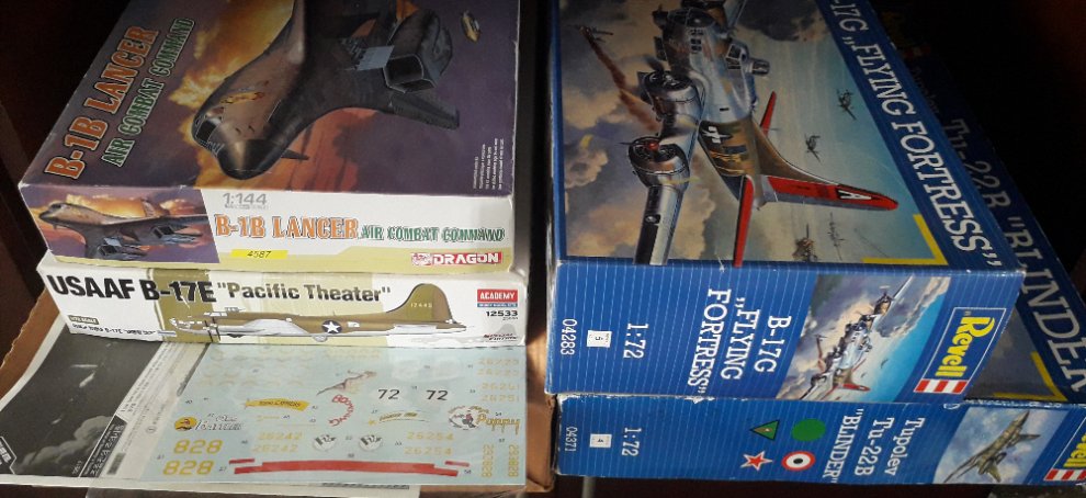 -B-17G: 조종석과 폭탄창일부 조립, 부품다수분리, 한쪽렌딩기어부품분실, 뒷수평날개 아카에서 이식 (사진참조). 1.7만