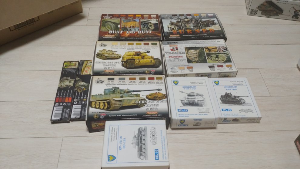 저 중에 독일 탱크세트의 올리브 그린 Burned의 Rusted umber가 없고 나머진 미개봉입니다.